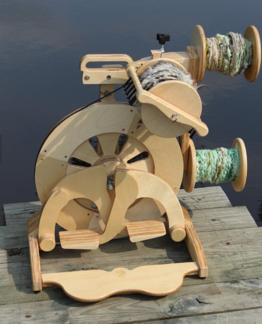 The Bullfrog is our newest Spinning Wheel model, and hit the market in 2018. It folds up in seconds for easy carrying and includes three 16 oz bobbins. The carrying handle makes it easy to bring with you to fairs and festivals. The heel pad folds up for a small footprint when not in use.